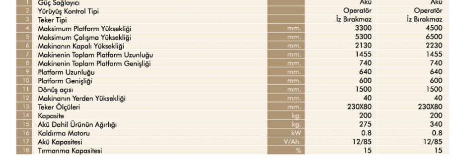 Çalışma Yüksekliği 6.5 metre