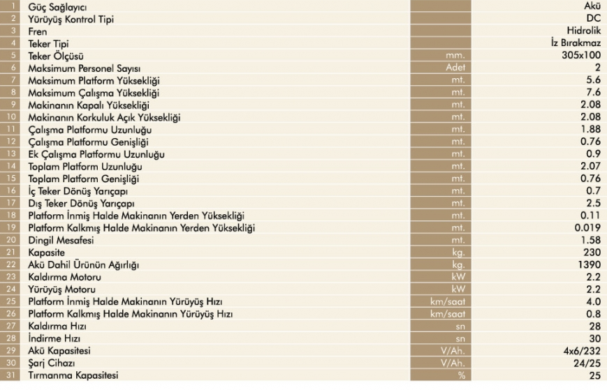 Platform taşıma kapasitesi 230 kg